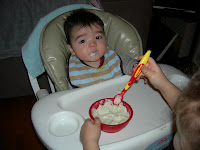 Eliana likes to help me feed Kai his dinner while I am getting our dinner. On this particular night Kai got to be fed by a princess.:)